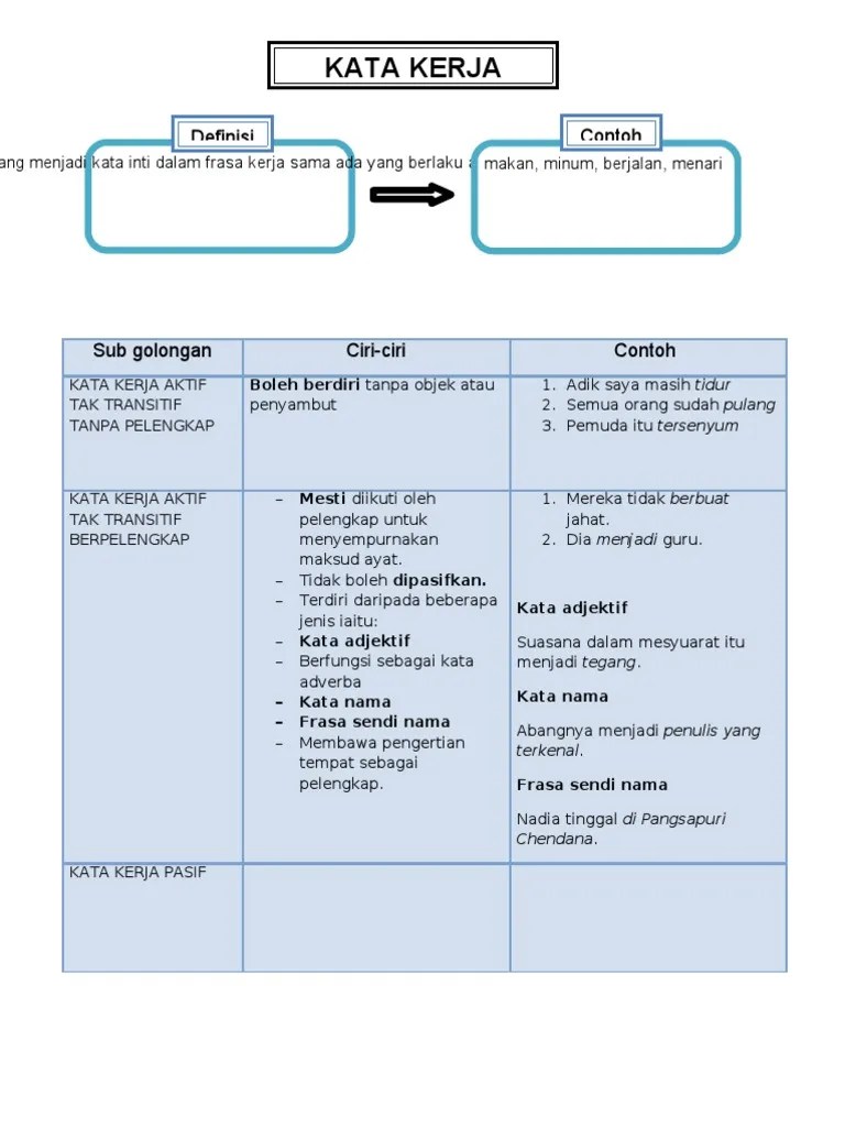 Latihan Kata Kerja Tak Transitif Tanpa Pelengkap - Nota Ringkas Kata Kerja Pdf